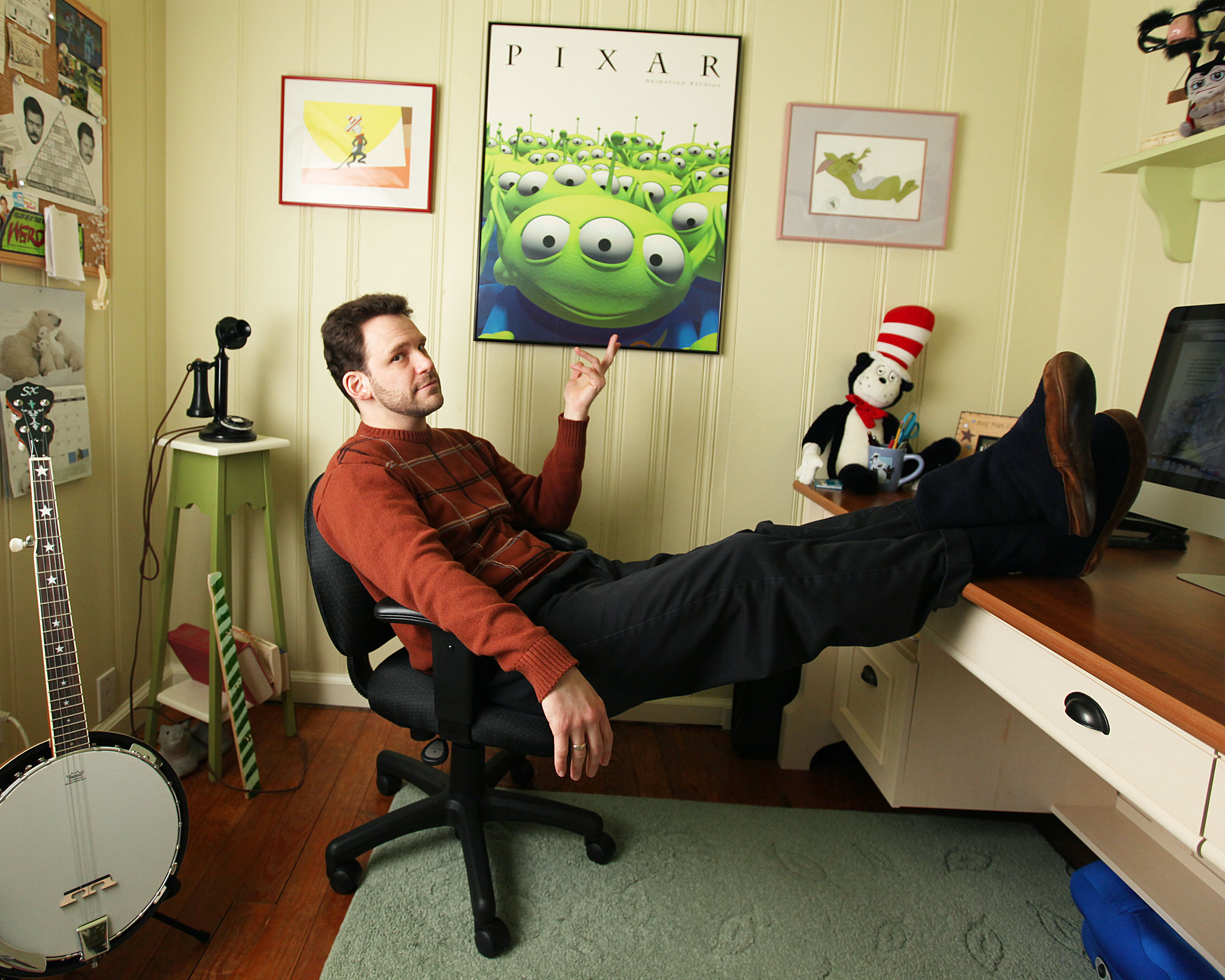 Great home office. Two thumbs up on the Pixar poster! Wish I had a home office of my own. My husband works from home, too, so he gets the REAL home office. I get a breakfast tray in bed. With no breakfast, just my laptop. Well, at least I’m comfy. But I would like a more inspiring room!