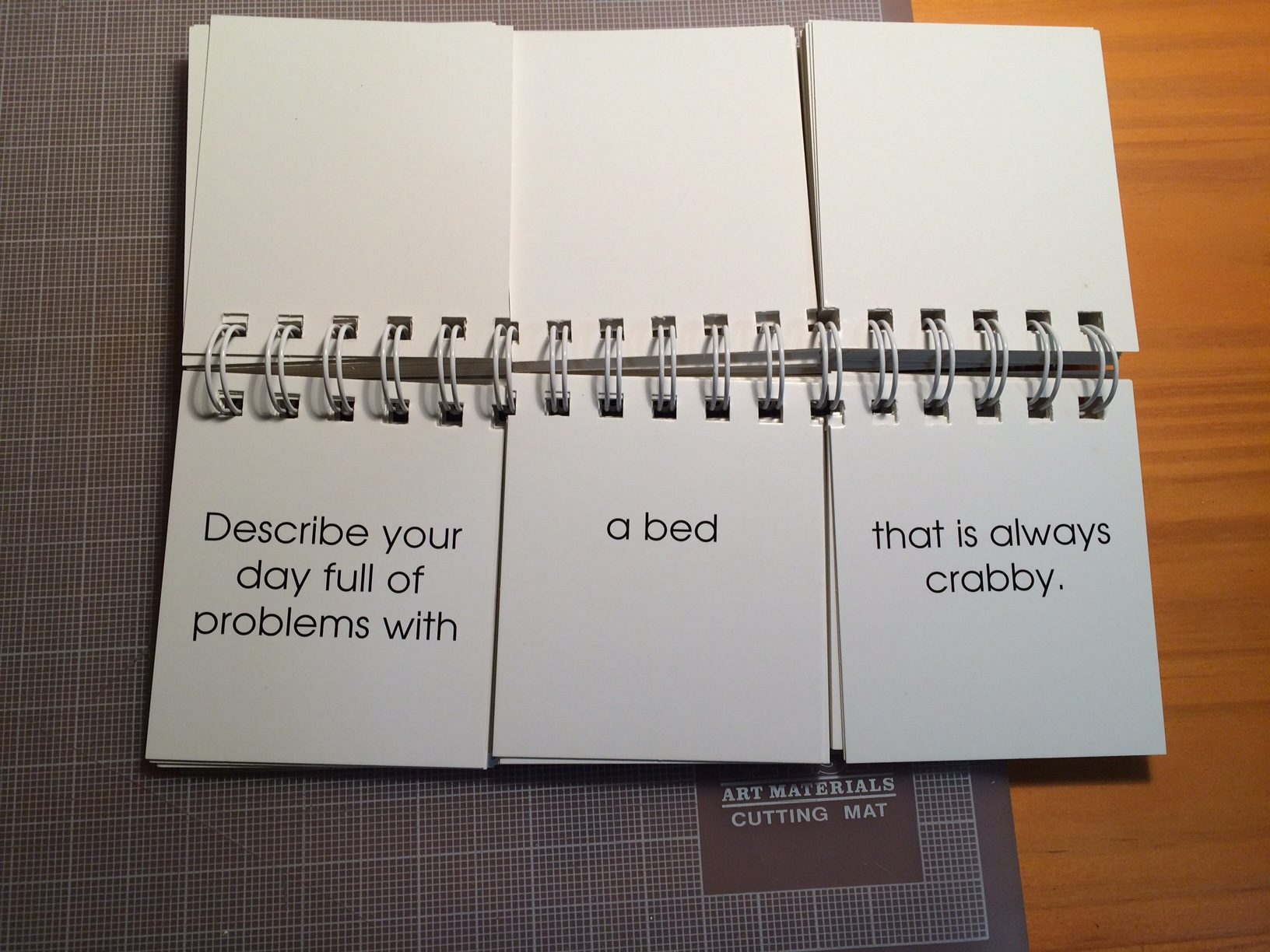 It’s a story-generating flipbook for kids. Ellen bought it for Alex a few years ago in the hope it would spark an interest in writing. It didn’t. Not by a long shot.