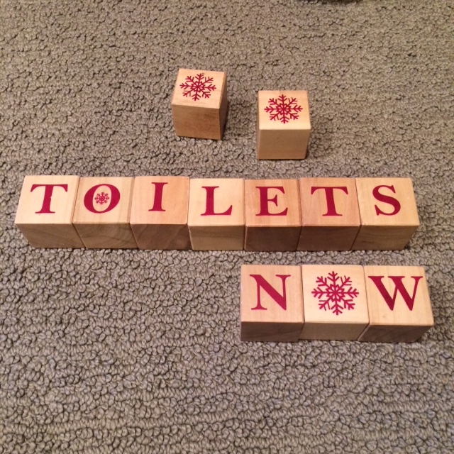 Ellen bought these blocks at a post-holiday sale last year. She packed them away before they could properly go on display so I didn’t know what they were supposed to spell.