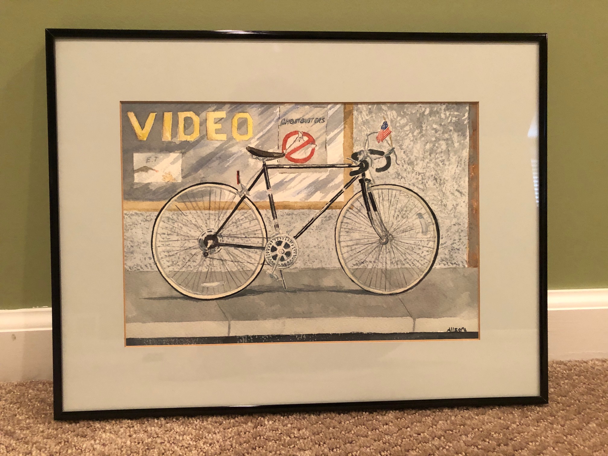 Mom smiled as I accepted the art without argument. She handed me two pieces; a watercolor of a bicycle and a charcoal drawing of a pensive chimp.