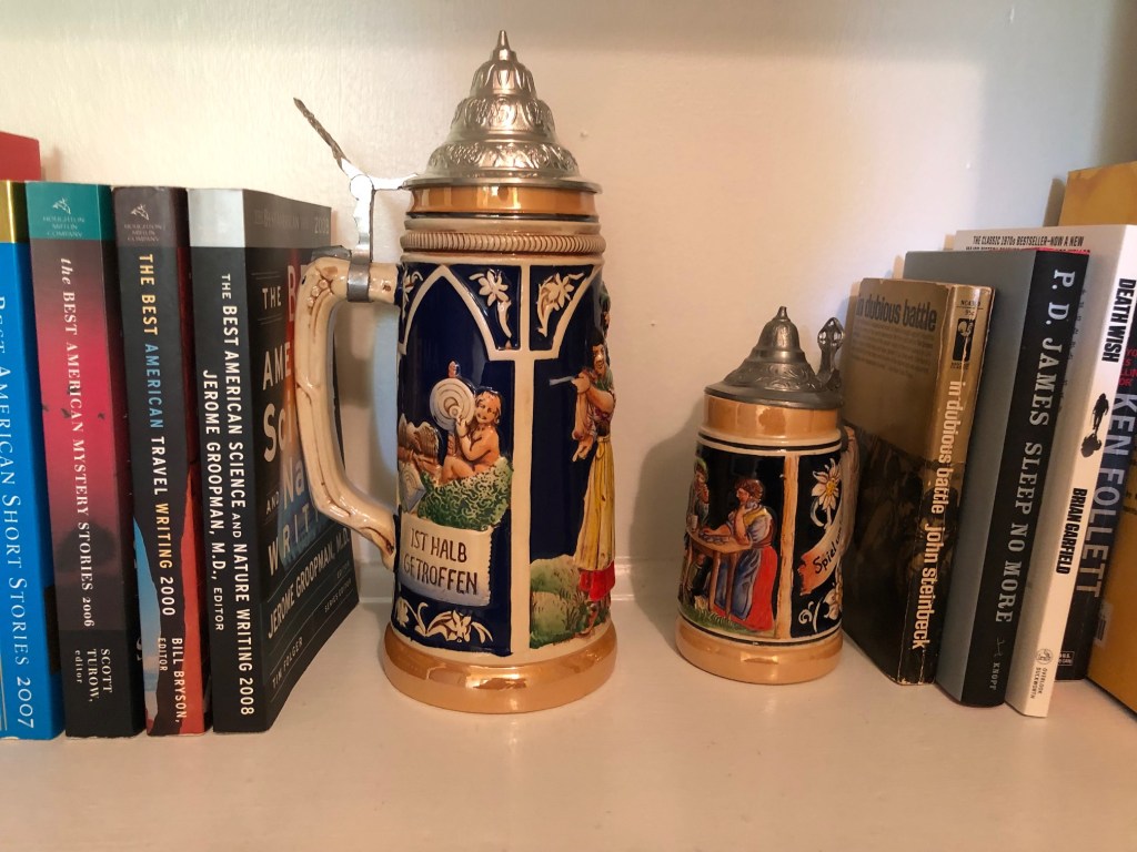 A few months ago, I wrote a post about Mom’s Lawful Neutral habit of pawning her stuff off on me. This is why I own a Ugly Don Quixote Statue (On sale now! Make me an offer!). It is also why I have a pair of Not-Ugly-Yet Equally-Worthless German Beer Steins.